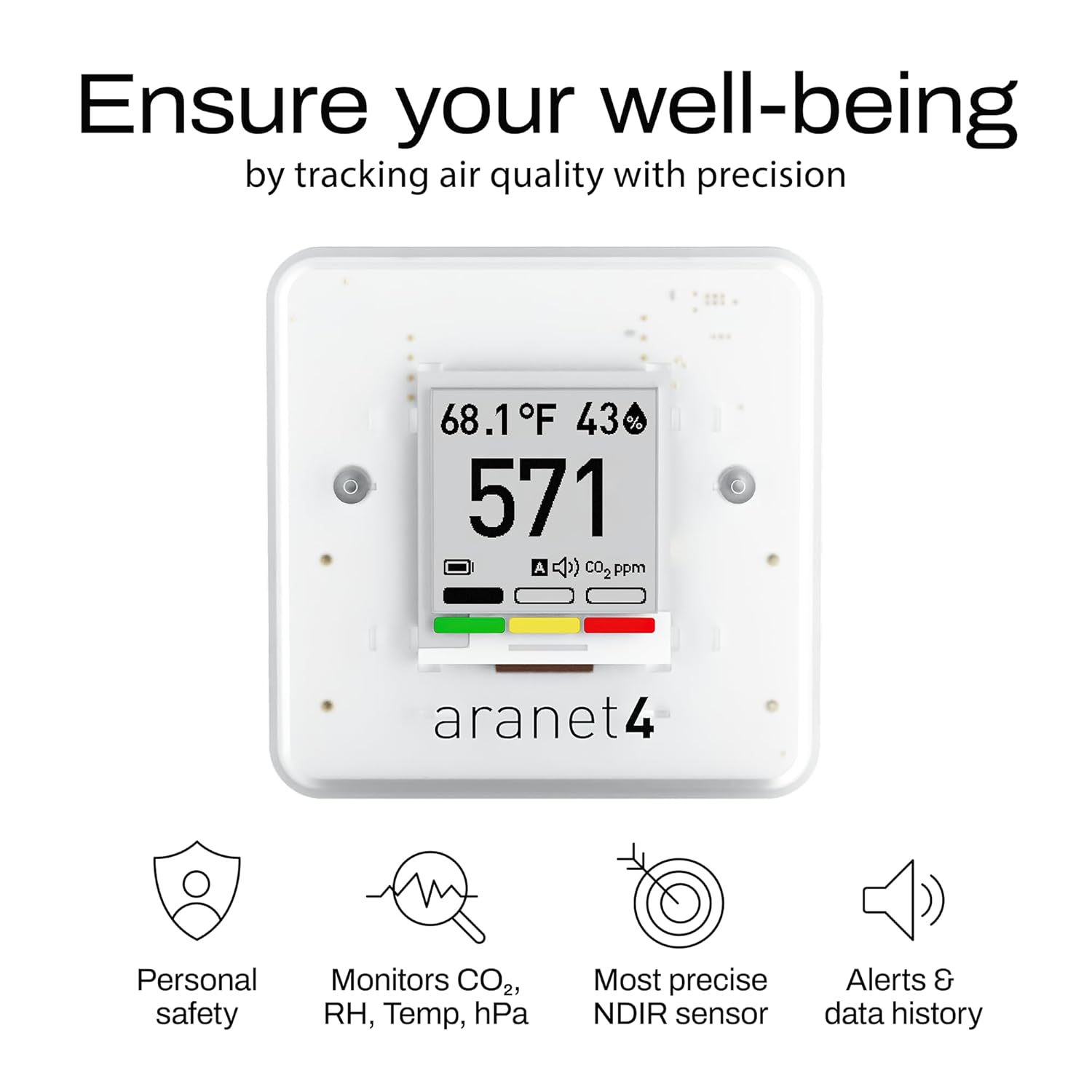 SAF Aranet4 Home: Wireless Indoor Air Quality Monitor for Office or School (CO2, Temperature, Humidity and More) Portable, Battery Powered, E-Ink Screen, App for Configuration & Data History
